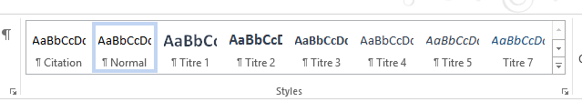 Tout d’abord, il faut absolument respecter l’utilisation du style. C’est dans le ruban Styles que  vous sélectionnez titre 1 pour votre titre principal, titre 2 pour votre sous-titre. Ensuite l’ordinateur fera le tri pour vous. Utiliser le style normal pour le texte.