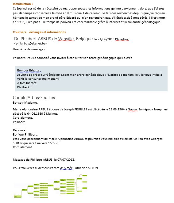 3.       Contacts généalogiques entre 2010 et 2013
