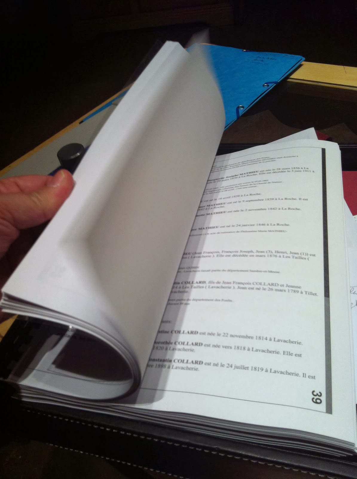 3. Décidément, l'inventivité des geneablogueurs est sans limite et m'épate à chaque fois.Que de bonnes idées à chaque lecture d'article.Un grand merci pour ce très beau cahier (j'ai aussi imprimé des échanges de mail et de messages sur des groupes Yahoo, mais bêtement rangés dans une pochette cartonnée)