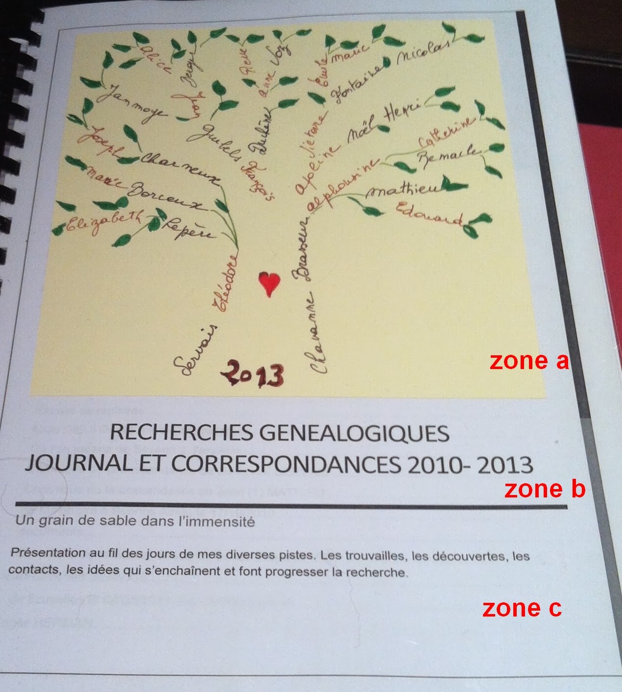 Que j’ai intitulé : RECHERCHES Généalogiques JOURNAL ET CORRESPONDANCES 2010-2013