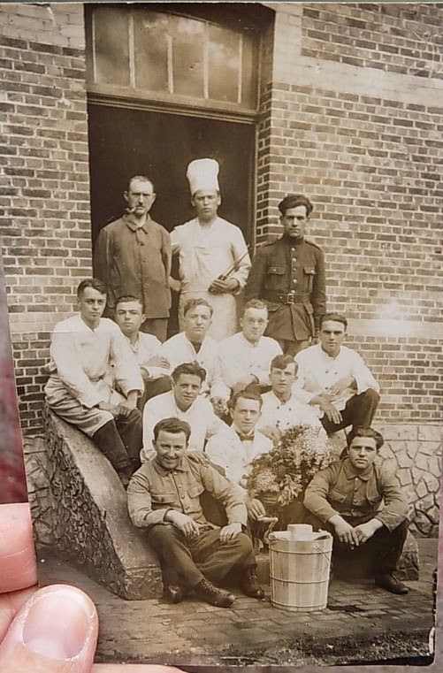 Et puis celles que l’on ne connaît pas, celles qui demanderont de sortir la loupe et la patience afin de reconstituer les événements. Tu vois, Belle, tu m’as envoyé une photo de mon grand-père, l’autre jour, en fait il est sur celle-ci aussi en costume de cuisinier. Nous devrions nous pencher sur son service militaire, car visiblement il l’a fait en cuisine. Je ne l’ai pourtant jamais vu aux fourneaux !
