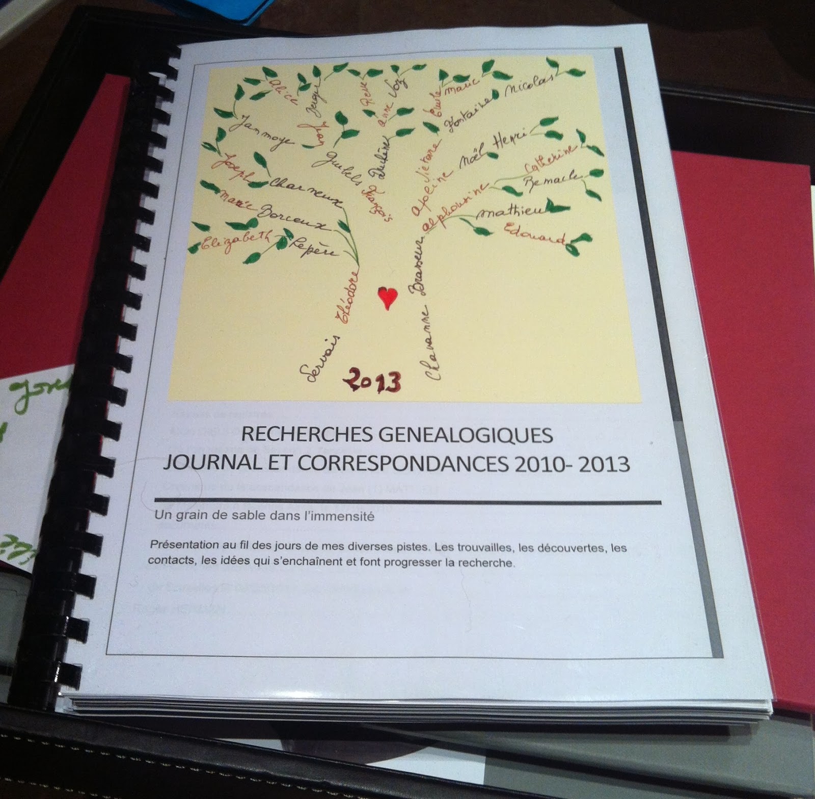 Je refais le tour de tout ce que j’emmène. Des jouets pour les petits, un cadeau pour son mari et des documents pour Belle. J’ai mis des jours à préparer tout cela. Une copie de mon journal, une copie de mon Gedcom sur Heredis, une copie des photos scannées. Tout cela pour un grand échange généalogique.