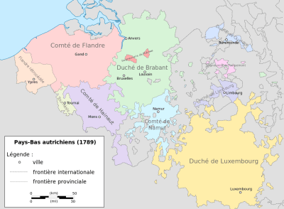 Après deux restaurations autrichiennes, les Pays-Bas autrichiens sont définitivement envahis et annexés par la République française en 1795.