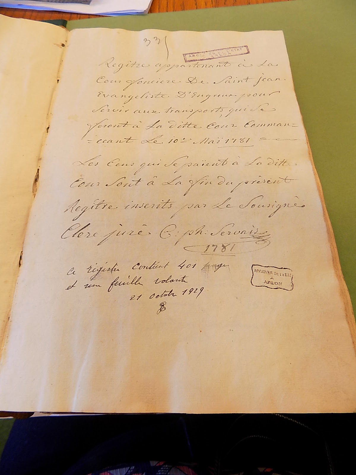 Je suis plongée dans un registre intitulé : 888 estampillé Archives Arlon