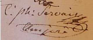 Grâce aux documents d’Arlon, j’ai pû préparer le travail et j’ai commandé environ dix registres qui me sont apportés avec beaucoup de délicatesse et de gentillesse et me voilà sous le coup d’un nouveau choc ! En lisant les blogs, je me rends compte combien chacun vit cette émotion de toucher des documents anciens, de découvrir la signature d’un ancêtre mais ici, il s’agit d’une partie des nombreux registres tenus par mes ancêtres. Je suis très troublée à l’ouverture du premier document. J’ai trouvé la signature typique rencontrée hier à Arlon ! J G SERVAIS et celle de C Jh SERVAIS.