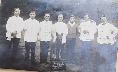 Il faut que je vous présente ce collègue, un berger qui travaillait avec « Les as du Mess Rappelé 1928 ». Louis LIBERT, grand-père de ma maitresse y faisait son régiment. Je peux dire que ce bon chien goûtait plein de restants de plats. Quelques fois un bout de saucisse, lui était spécialement destiné. Visiblement, il a une place d’honneur dans cette équipe, il a même un podium ! Nous ne connaissons pas ses origines.