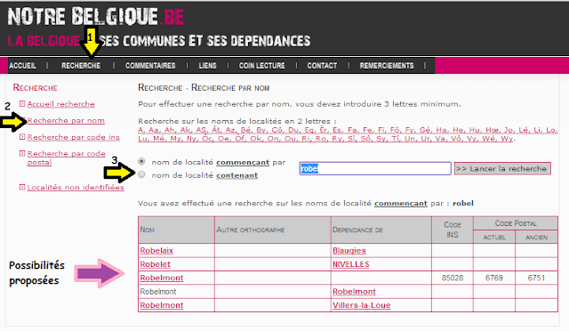 Il suffit de suivre les onglets Recherche (1) – par nom (2) et de rentrer soit les premières lettres, soit un groupe de lettre qui se trouve dans le nom (3)…