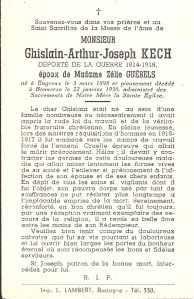Ghislain Arthur KECH est né le 3 mars 1898 à Engreux, Mabonpré Belgique (Province du Luxembourg)