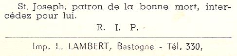 On peut donc supposer que c’est ainsi que Ghislain a pu rejoindre dignement le cimetière de Bonnerue où il est décédé. C’est probablement sa famille proche qui a gérer les frais d’enterrement, de faire-part et de messe du souvenir. La tradition luxembourgeoise fait que l’on offre un peu de pain, de charcuterie et de fromage, ainsi qu’un café, de la quetsche ou de la mirabelle pour se réconforter tous ensemble du chagrin laissé par la perte de la personne disparue.