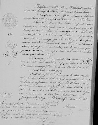 Le 9 mars 1852 : Jean François BERGER, veuf de Marie Françoise SPRIMONT (1784-1839) s’est rendu chez le notaire Maitre Isidore BAUDRUX résident à Habay La Neuve. Acte a été légitimé le 15 mars 1852. On peut y lire ceci :