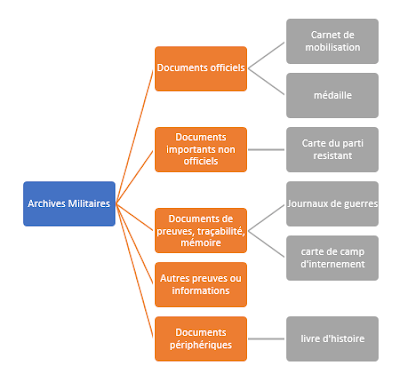 Pour un individu : nous avons donc le tableau ci-dessous avec les 5 catégories principales. Dans la liste des pièces officielles, il y a évidemment tout ce que l’état a pu produire comme pièces officielles, en documents importants, les preuves d’appartenance à la résistance ou autres documents.
