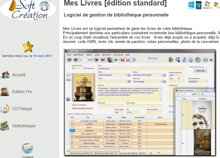 Pour faire l’inventaire de mes livres, j’ai investi dans un petit logiciel que je trouve très pratique. J’y ai enregistré également, mes cours, notes, projets. Il fait automatiquement le classement et permet une recherche aisée, c’est un vrai plus. Vous le trouverez ici