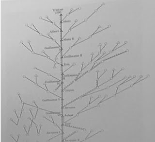 Dans cette famille, il y avait une mémoire orale particulière aux généalogies bretonnes, qui peut s’étendre sur cent à deux cents noms de personnes, mais sans pouvoir être vérifiée. Il restait toutefois la persistance de l’aristocratie et de la bourgeoise au XIVème siècle avec une mixité assez répandue dans ces deux sections. La généalogie des maisons (lieu d’habitat) permettait d’organiser la mémoire familiale autour des cousinades.