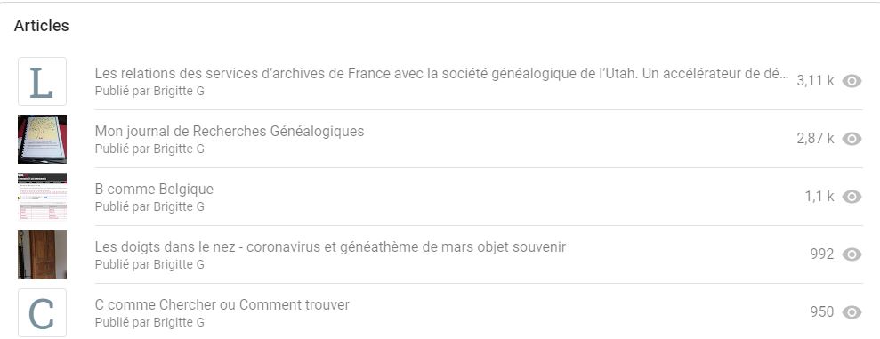 - les tutos comme : mon journal de recherches généalogiques et B comme Belgique. Ces deux articles, feront l’objet d’une mise à jour prochainement.