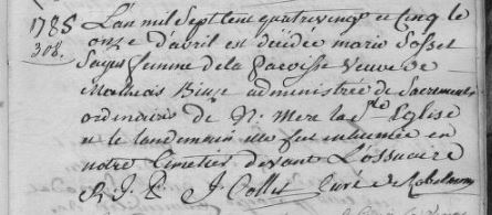 Marie SOSSON sage-femme en 1777