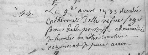 BELLE Catherine – Registre BMS de Robelmont S 1733- acte 44 Archives d’État à Arlon