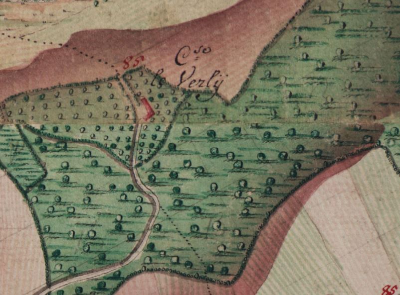 Cense de Verly – carte FERRARIS 1777 Kabinet der Oostenrijkse Nederlanden en het Prinsbisdom Luik n°182 – KBR en ligne