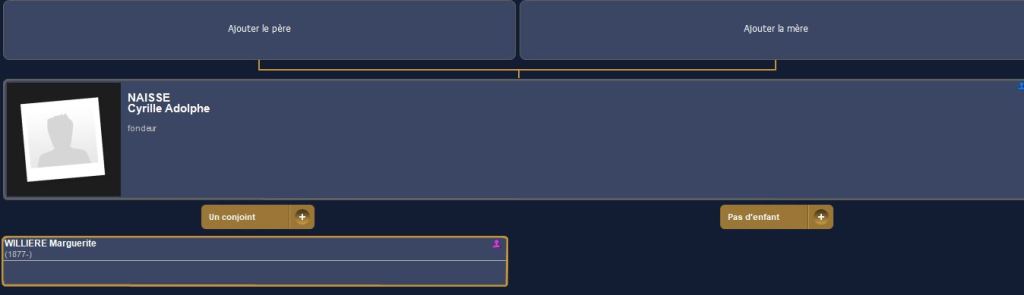 Petite-fille de Simon WILLIÈRE * forgeron à Berchiwé mon sosa à la 6e génération. Cyrille Adolphe NAISSE est donc de l’époux d’une collatérale.