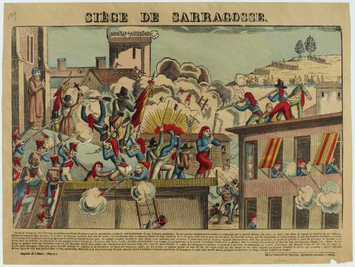 En janvier 1809, après la défaite de Tuleda, les forces espagnoles se réfugient à Saragosse et forment un camp retranché, approvisionné en vivres et munitions. Napoléon repartit vers l’ouest, demande au maréchal LANNES de prendre la ville. Les assauts deviennent guerre de rues, tant les aragonais sont décidés à se défendre jusqu’à en mourir. Après les remparts et une partie de la ville, chaque maison, chaque couvent doit être récupérés. 100.000 personnes sont maintenant réfugiées dans la ville, la maladie et la famine s’en mêle tuant par centaines. Il faut attendre le 21 février pour que soit signée la capitulation, des milliers de personnes ont péris.