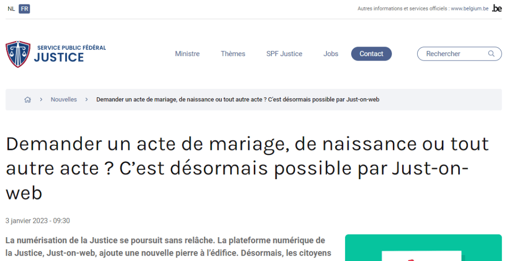 Si vous êtes belge, La plateforme de la Justice Just-on-web permet de consulter et de télécharger de manière totalement numérique, vos documents personnels mais pas ceux de vos proches.
