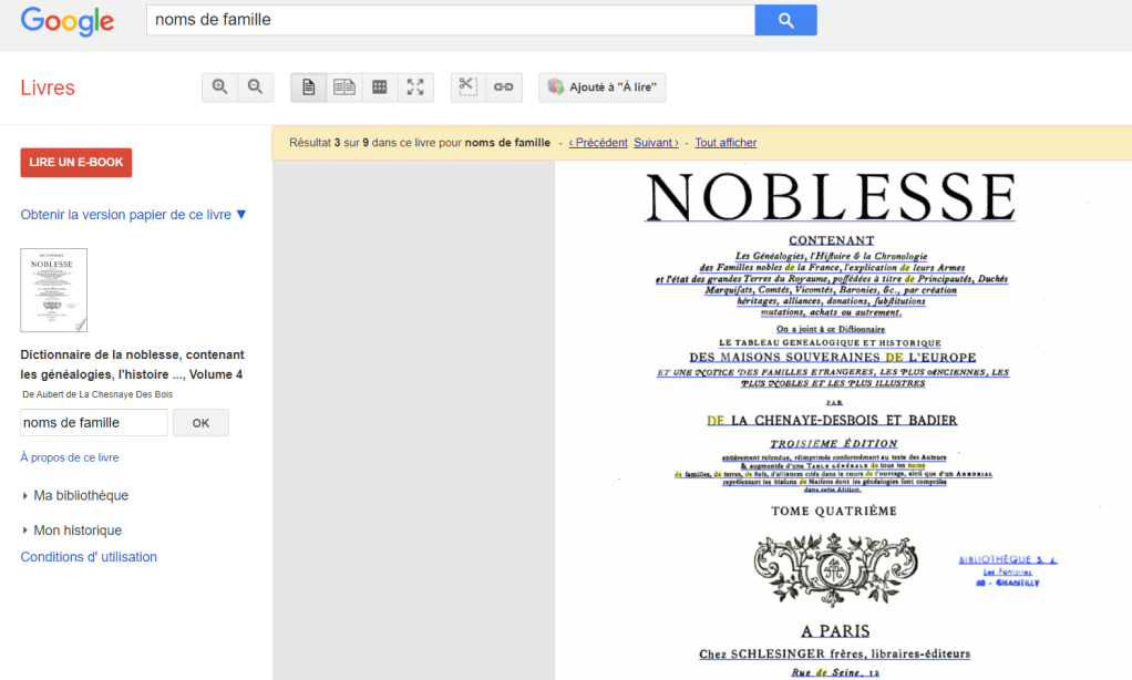 - Dictionnaire de la Noblesse par de la Chesnayse-desbois et Badier