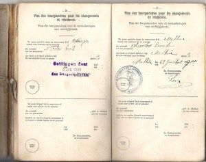 Son premier visa est son retour à Mellier sa commune d’origine en 1899, soit deux ans après l’entrée en service militaire. Son deuxième visa est à tamponné à Oettingen le 3 janvier 1900, der Bürgmeister, écrit en allemand. J’ai d’abord pensé à celui qui se trouve en Souabe, mais un militaire n’aurait pas eu le droit d’aller aussi loin.