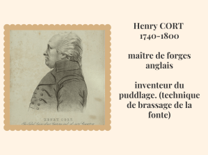 Un peu plus tard, Henri CORT, maître de forges, inventa le puddlage, une technique de brassage de la fonte qui permis d’exploiter le fer vingt-quatre heures sur vingt-quatre et sept jours sur sept. Ce fût le début de la coulée continue dont on parle encore actuellement.