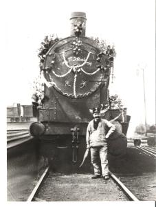 Le voici lors du premier mai, fête du travail où l’on décorait la locomotive d’une couronne de fleurs.