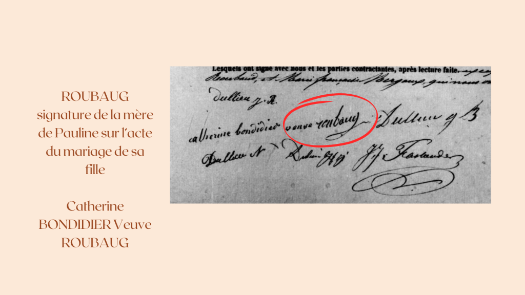 ROUBAUG : Un autre détail, la signature de sa mère est assez intéressante car elle écrit BONDIDIER Veuve ROUBAUG.