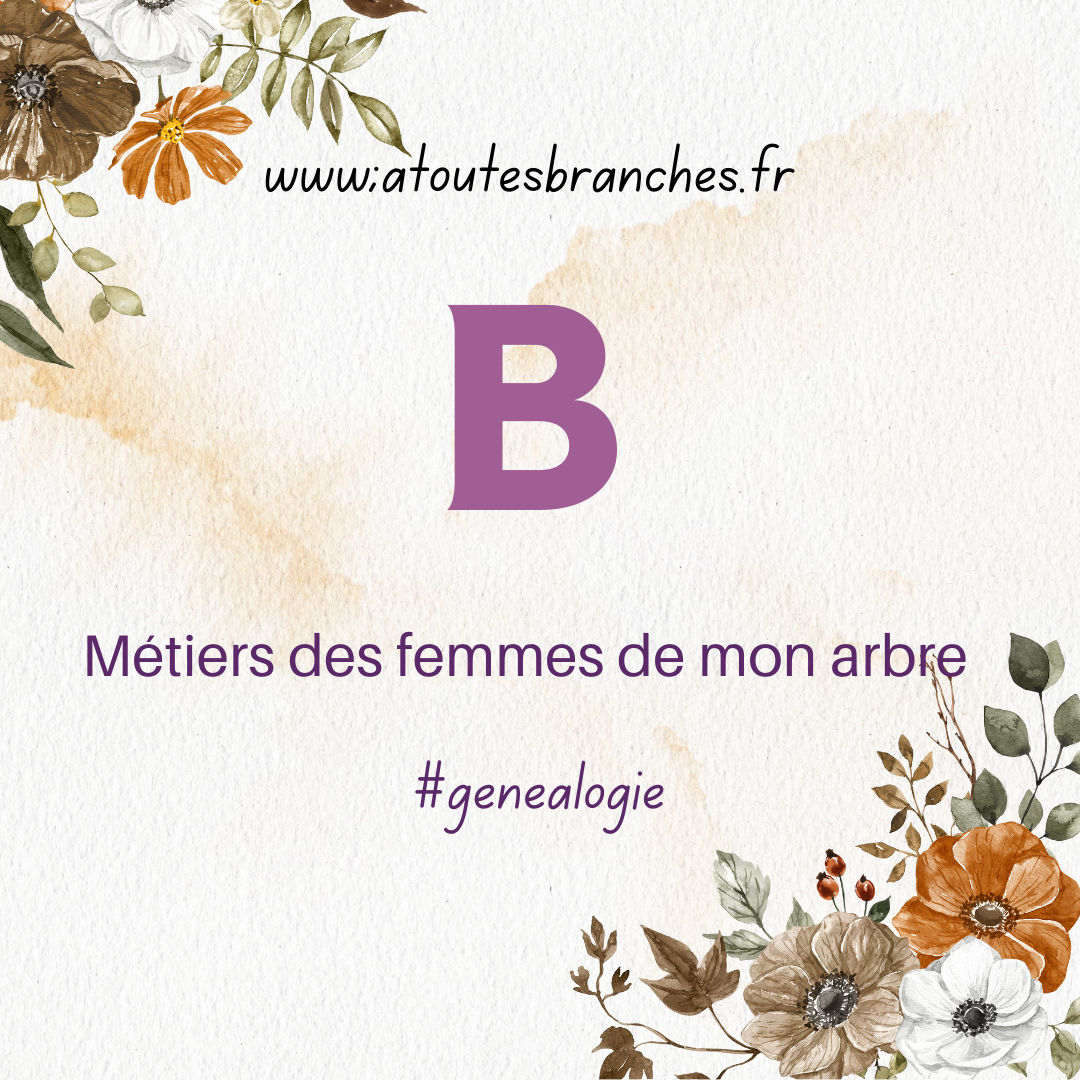 Parmi les 8.870 femmes de mon arbre, pour cette lettre, 29 femmes sont signalées ayant une profession dont le nouveau mot à la mode au moment de la création de l’état-civil : ménagère qui deviendra femme au foyer plus tard à la libération de la femme.