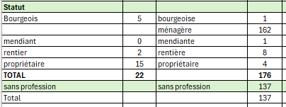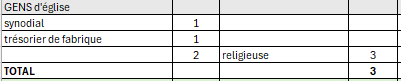 Les gens d’église ont deux hommes et 3 femmes, alors que ce ne sont pas des professions mais un statut.