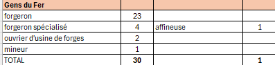 Viennent ensuite les manouvriers, ouvriers (85 hommes et 50 femmes) dont on ne sait s’ils étaient embauchés au travail de la terre ou au travail de la forge.