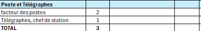 Les postes et télégraphes : sont représentés par 3 hommes et aucune femme.